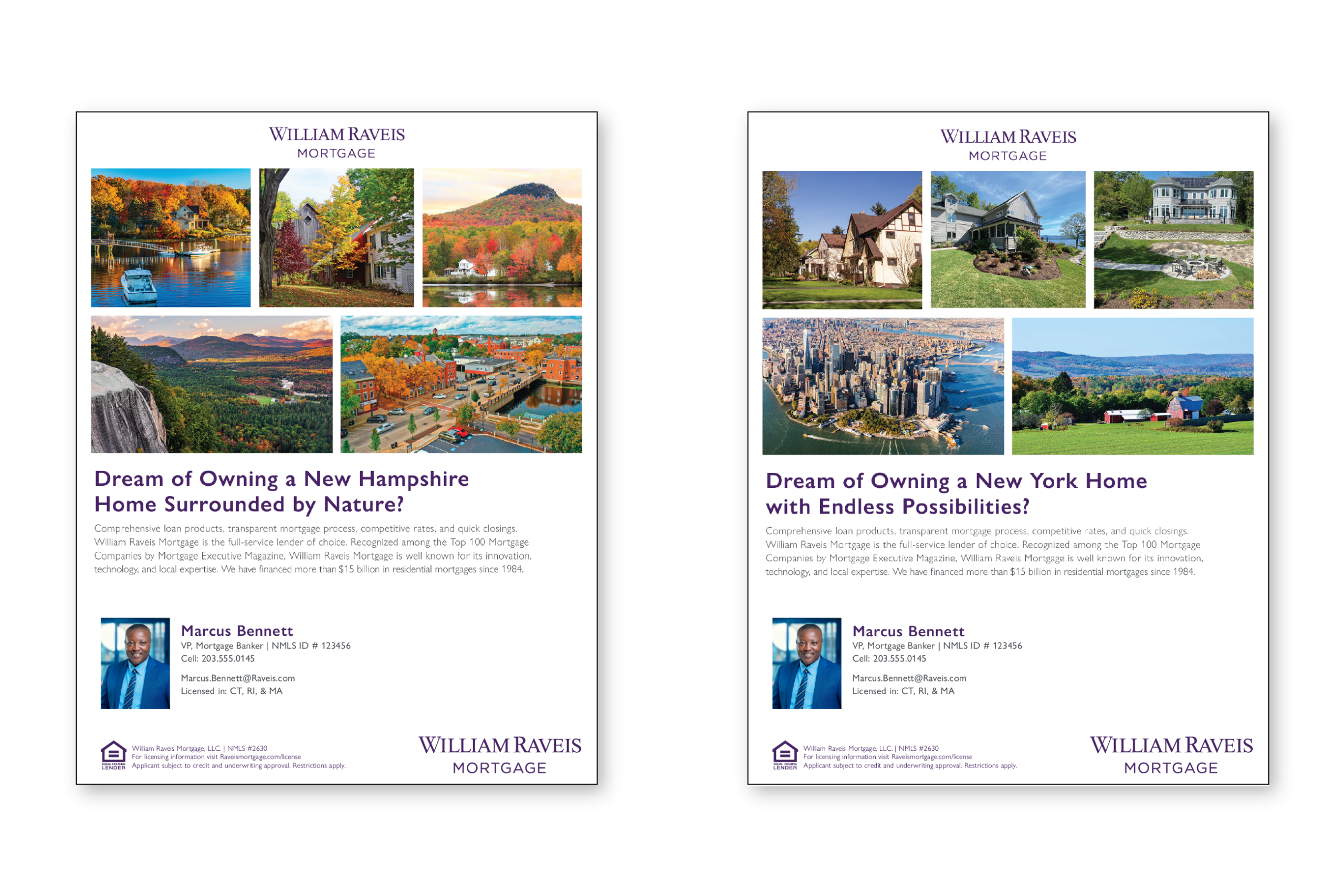 The team at William Raveis Mortgage knew that supporting mortgage bankers with high-quality marketing was crucial, but they needed a streamlined approach that could keep pace with demand. They required branded assets, from social media content to printed collateral, that were easy to use, customizable, and could amplify their reputation in a crowded market.